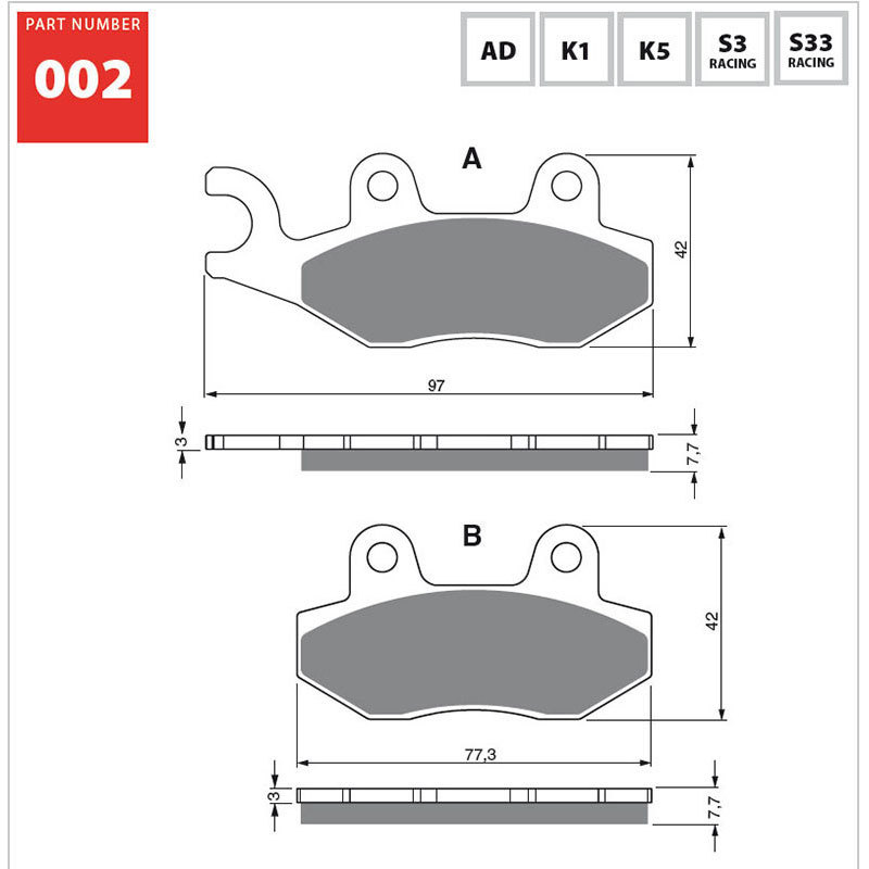 • The S3 sintered compound is optimal for street bikes, dual sport, touring, cruisers. It's recommended on applications with rather larger engines or for people who ride harder than average and want the great stopping power of a sintered brake pad.