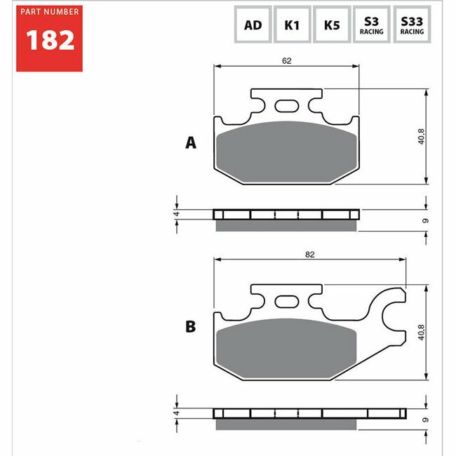 • The K5 sintered compound is optimal for off-road dirt bikes and ATV. It is recommended for riders who demand great off-road stopping power and brake pad durability when riding on tough off-road terrains.