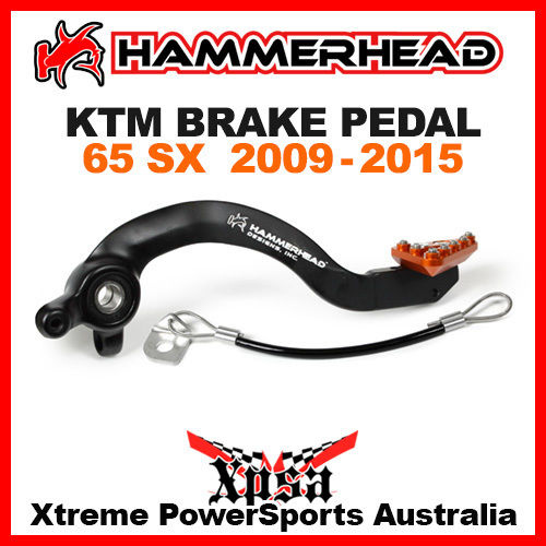 HAMMERHEAD FORGED BRAKE PEDAL ORANGE KTM 65 SX 65SX SX65 2009-2015 MX DIRT BIKE You are purchasing : Hammerhead Forged Brake Pedal - Orange (H-12-0561-21-44-O) Suits: KTM 65 SX Years 2009-2015 Specifications: Pre fitted with large aluminium tip. Multiple top position allow length adjustment to fit any rider. Forged using 6061 aluminium. Stainless steel hardware and Ano-slick coated spring.