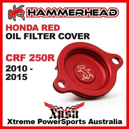 HAMMERHEAD RED OIL FILTER COVER HONDA CRF250R CRF 250R 2010-2015 MX MOTOCROSS You are purchasing: Hammerhead Oil Filter Cover - Red (H-60-0101-00-10) Suits: HONDA CRF 250R Years 2010-2015 Specifications: CNC machined from 6061-T6 Aircraft-grade aluminium. Precision OEM replacement fit. Anodized in colours to suit application. To fit Honda CRF250R 2010, 2011, 2012, 2013, 2014, 2015.