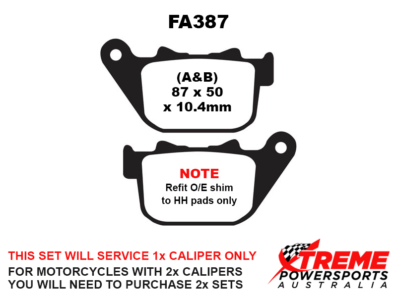 This set of brake pads will service 1x brake caliper only. For motorcycles with 2x brake calipers, you will need to purchase 2x brake pad sets.