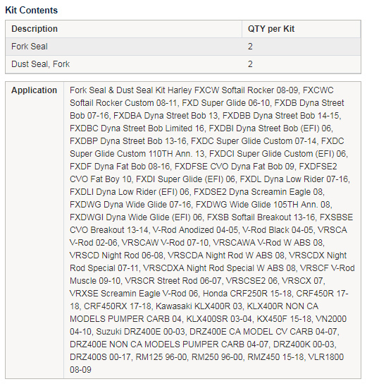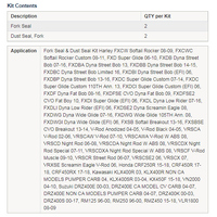 • Kit contains 2x Fork Seals and 2x Dust Seals.