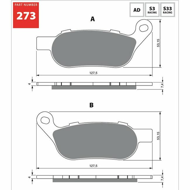 • The S3 sintered compound is optimal for street bikes, dual sport, touring, cruisers. It's recommended on applications with rather larger engines or for people who ride harder than average and want the great stopping power of a sintered brake pad.