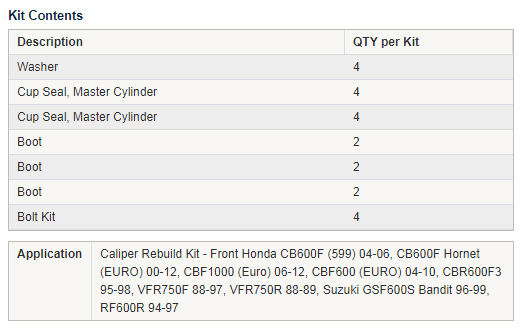 • A quality caliper rebuild kit from All Balls.