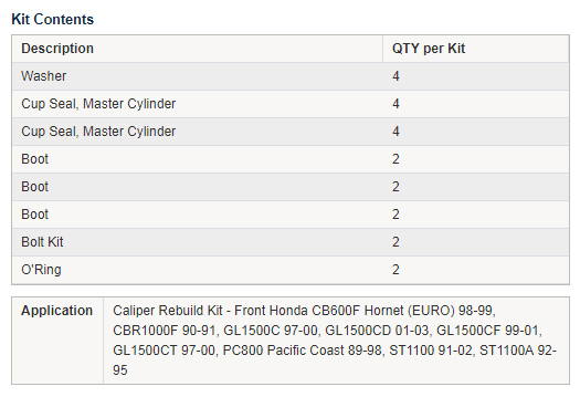 • A quality caliper rebuild kit from All Balls.