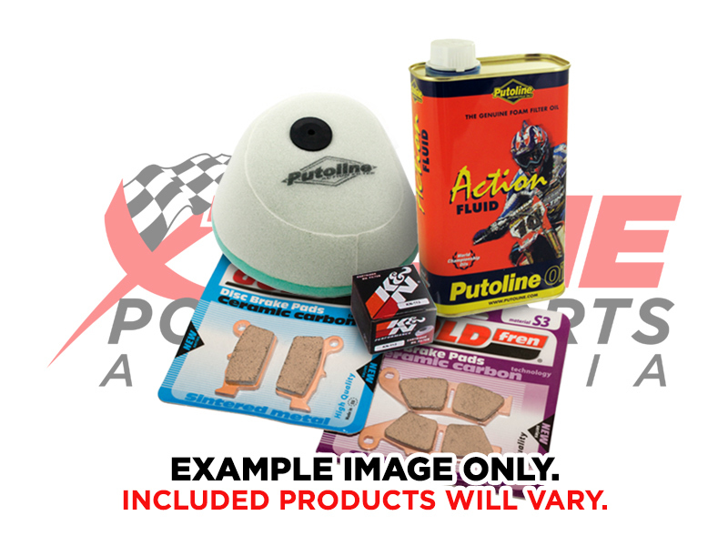 • Kits are made to suit application and may include an air filter, air filter oil, oil filter and brake pads or shoes.