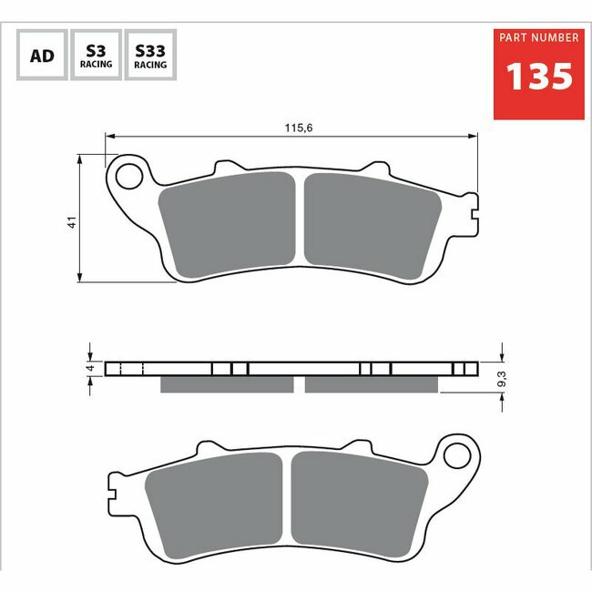 • The S3 sintered compound is optimal for street bikes, dual sport, touring, cruisers. It's recommended on applications with rather larger engines or for people who ride harder than average and want the great stopping power of a sintered brake pad.
