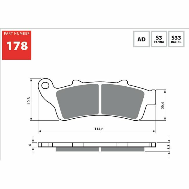 • The S3 sintered compound is optimal for street bikes, dual sport, touring, cruisers. It's recommended on applications with rather larger engines or for people who ride harder than average and want the great stopping power of a sintered brake pad.
