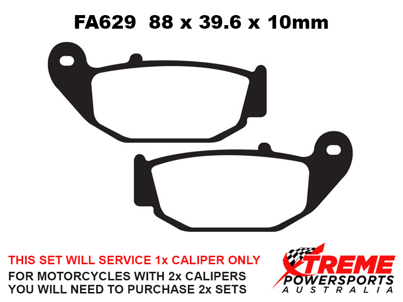This set of brake pads will service 1x brake caliper only. For motorcycles with 2x brake calipers, you will need to purchase 2x brake pad sets.