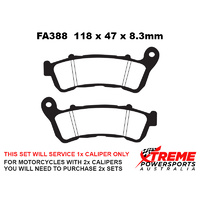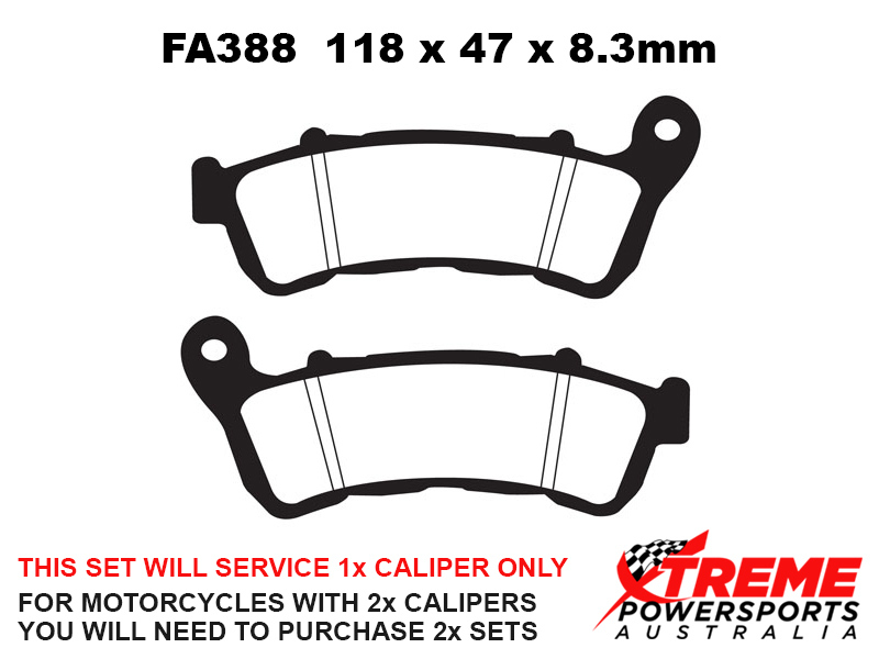 This set of brake pads will service 1x brake caliper only. For motorcycles with 2x brake calipers, you will need to purchase 2x brake pad sets.