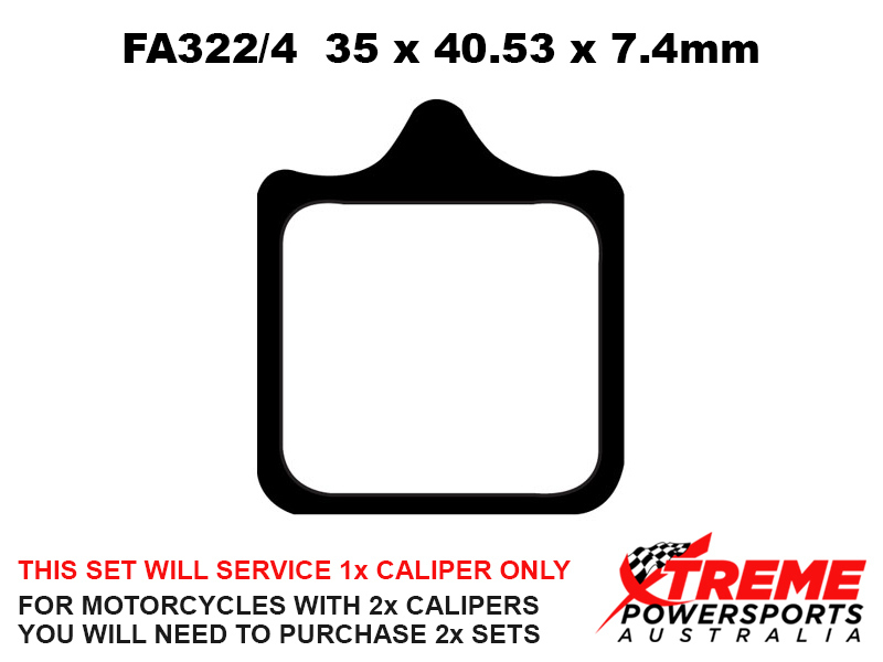 This set of brake pads will service 1x brake caliper only. For motorcycles with 2x brake calipers, you will need to purchase 2x brake pad sets.
