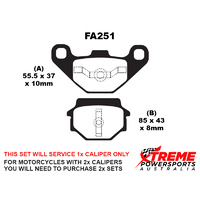 This set of brake pads will service 1x brake caliper only. For motorcycles with 2x brake calipers, you will need to purchase 2x brake pad sets.