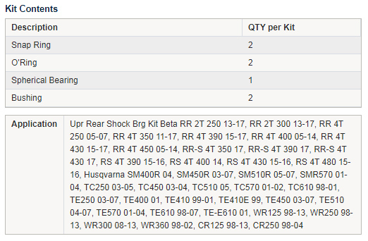 • Also included are cup type seals-OEM style and hardened and precision ground bushes.