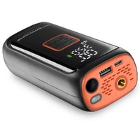 SMART AIR PUMP is compact, multifunctional, and ideal for motorcycles, bicycles, and cars. It inflates up to 4 tyres in under 4 minutes, features an integrated hose, dual display for real-time pressure monitoring, auto-stop function, LED emergency light, and power bank capability, with over 6 months of standby battery life.