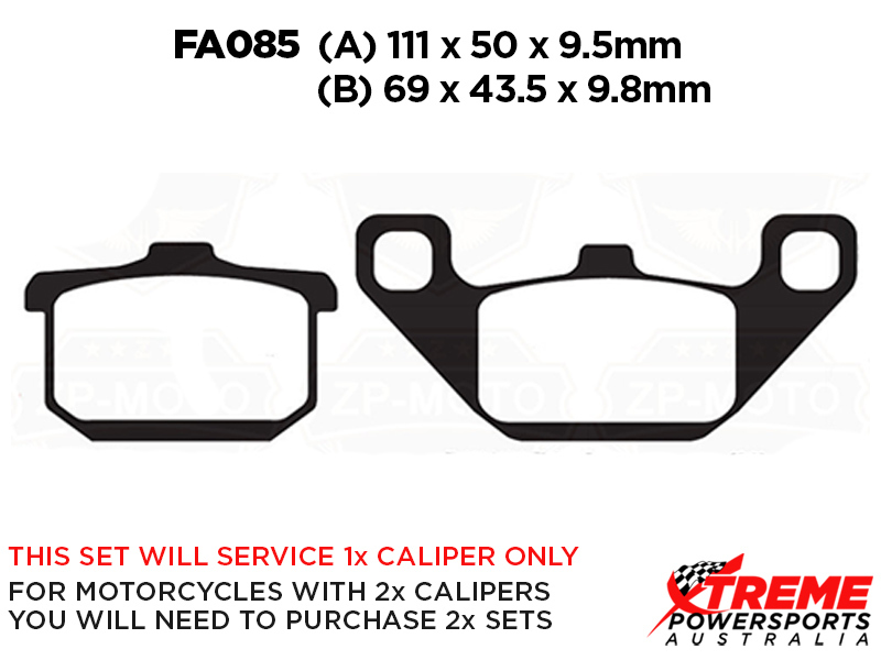 This set of brake pads will service 1x brake caliper only. For motorcycles with 2x brake calipers, you will need to purchase 2x brake pad sets.
