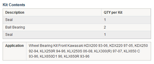 • All the bearings and seals required to refit a wheel in one convenient package.