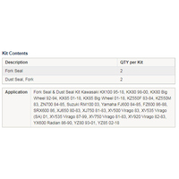 • Kit contains 2x Fork Seals and 2x Dust Seals.