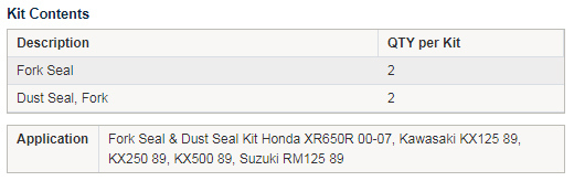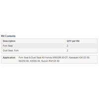 • Kit contains 2x Fork Seals and 2x Dust Seals.