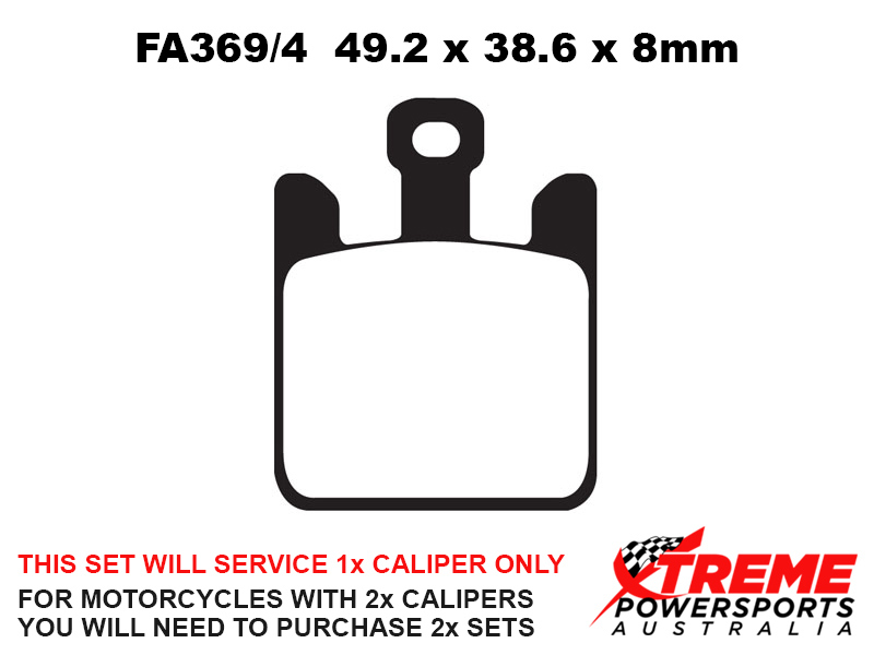This set of brake pads will service 1x brake caliper only. For motorcycles with 2x brake calipers, you will need to purchase 2x brake pad sets.