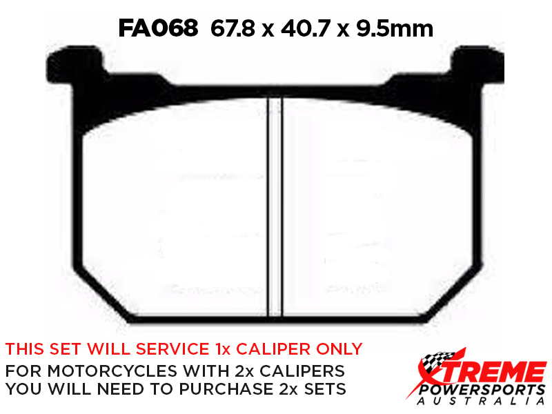 This set of brake pads will service 1x brake caliper only. For motorcycles with 2x brake calipers, you will need to purchase 2x brake pad sets.