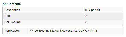 • All the bearings and seals required to refit a wheel in one convenient package.