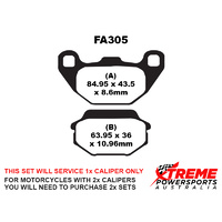 This set of brake pads will service 1x brake caliper only. For motorcycles with 2x brake calipers, you will need to purchase 2x brake pad sets.