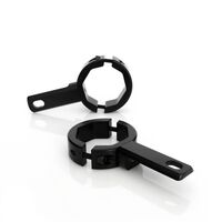 This DENALI Bar Clamp Light Mount Kit allows fitment of any DENALI LED Light Kit to the inner fork tubes on motorcycles, or any tube. The 39mm - 49mm (1.6-1.875in) in diameter allow the light mounts to have a unique octagonal inner profile that allow the clamps to securely grip a wide range of tube diameters and include an optional, fully rotatable mounting shelf to create a super versatile and robust light mounting solution.