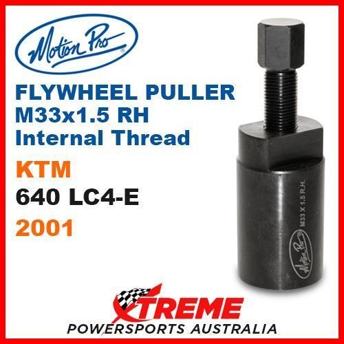 MOTION PRO M33x1.5 RH INT FLYWHEEL PULLER KTM 640 LC4-E 640 LC4E 2001 DIRT BIKE You are purchasing : Motion Pro Flywheel Puller M33 x 1.5 RH Int (08-0390) Suits: KTM 640 LC4-E Years 2001 Specifications: Used for removal of the flywheel or rotor if applicable. Equivalent to KTM tool 58429009000 (16mm crankshaft protector not included). Premium high quality carbon steel. Heat treated for strength and durability. Durable hot black oxide finish. Laser etched with Motion Pro logo and part number. To fit KTM 640 LC4-E 2001 models.