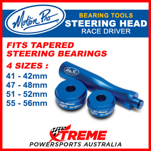 • Fits tapered steering bearings 41-42 mm, 47-48 mm, 51-52 mm and 55-56 mm.