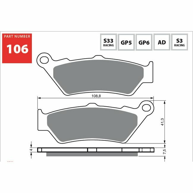 • The S3 sintered compound is optimal for street bikes, dual sport, touring, cruisers. It's recommended on applications with rather larger engines or for people who ride harder than average and want the great stopping power of a sintered brake pad.