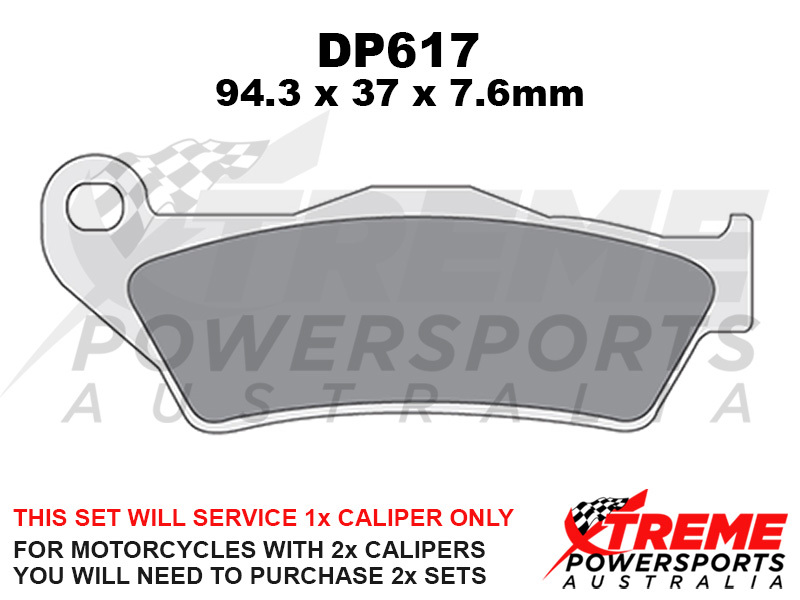 This set of brake pads will service 1x brake caliper only. For motorcycles with 2x brake calipers, you will need to purchase 2x brake pad sets.