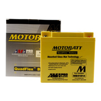 Motobatt batteries are manufactured from Absorbed Glass Mat (AGM) this design has revolutionised the motorcycle ATV lawnmower and small engine industry. QuadFlex provides a unique four-terminal design with two positives two negatives along with height spacers that permit an almost universal fit. All Motobatt AGM Batteries are maintenance-free non-hazardous non-spill charged and ready to install directly out of the box.