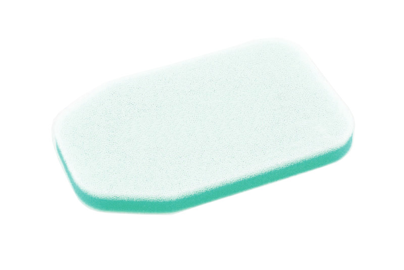 • Each filter is made of two layers of polyester foam, each with different porosities, flame laminated and welded into a single component to act as pre-filter and fine filter.