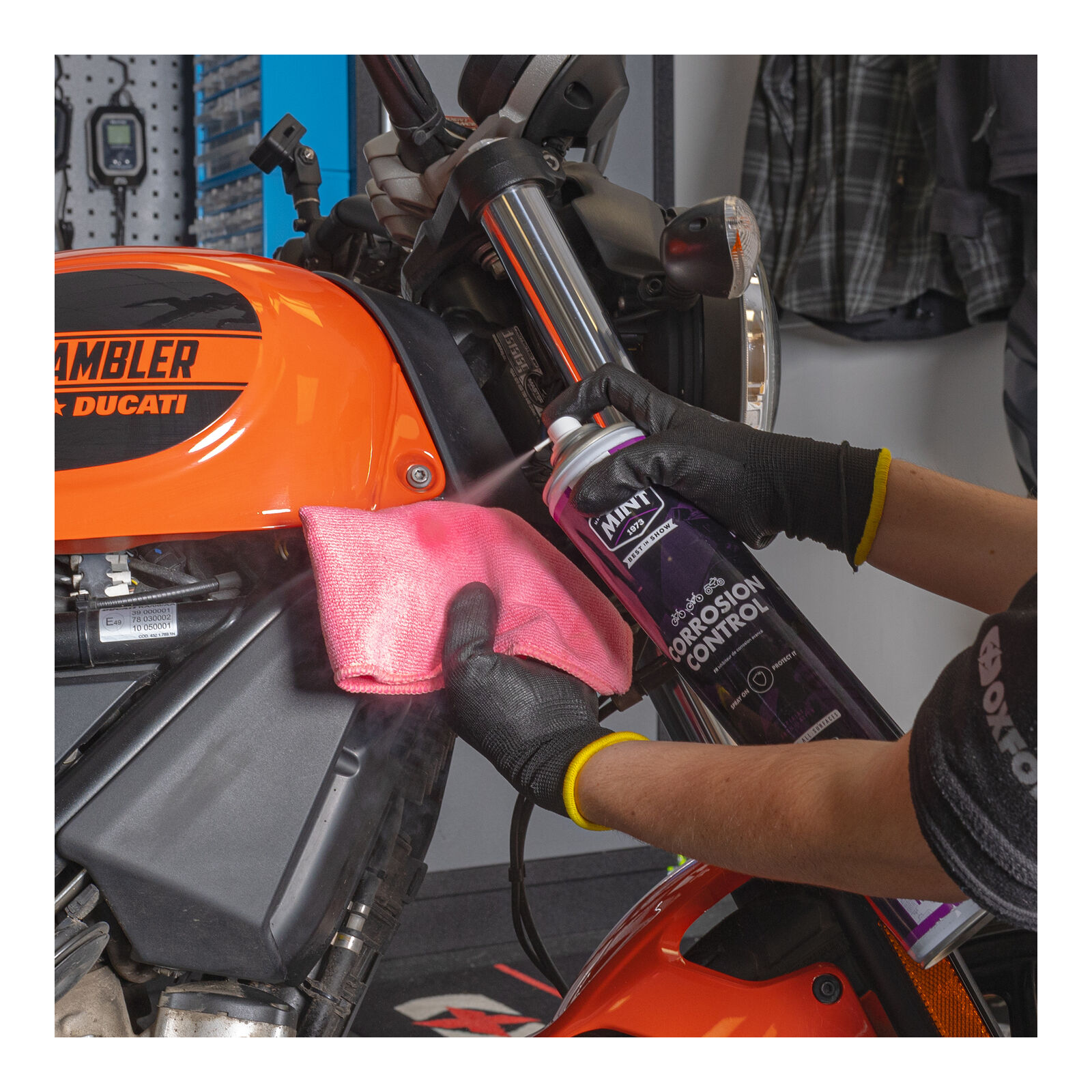 Mint Anti Corrosion is designed to protect your bike from existing and new corrosion. This product is easy to apply and once used it forms a thin film that creates a protective barrier against moisture salt and other environmental elements that can cause rust.