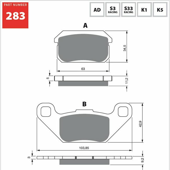 • The K5 sintered compound is optimal for off-road dirt bikes and ATV. It is recommended for riders who demand great off-road stopping power and brake pad durability when riding on tough off-road terrains.