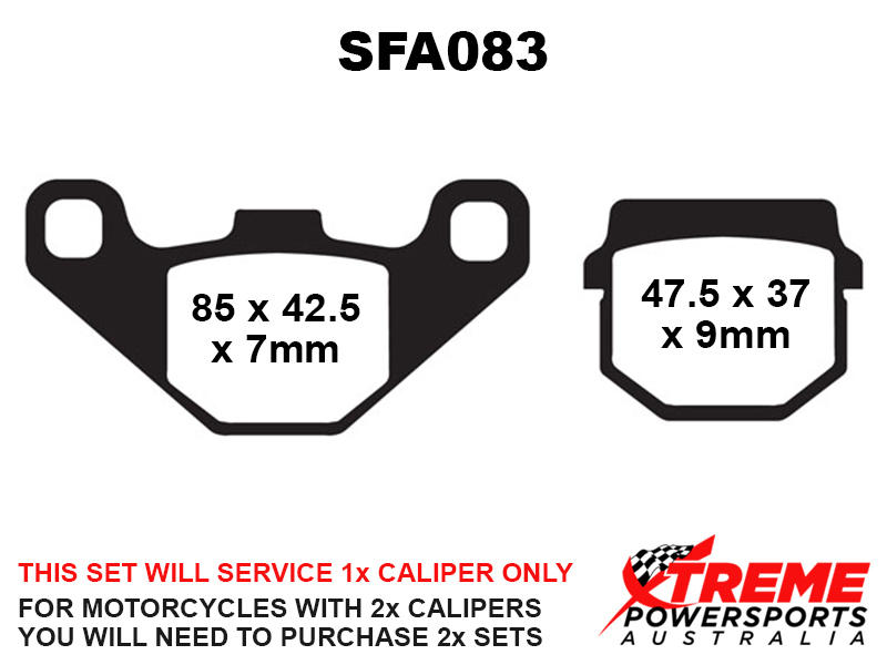 This set of brake pads will service 1x brake caliper only. For motorcycles with 2x brake calipers, you will need to purchase 2x brake pad sets.