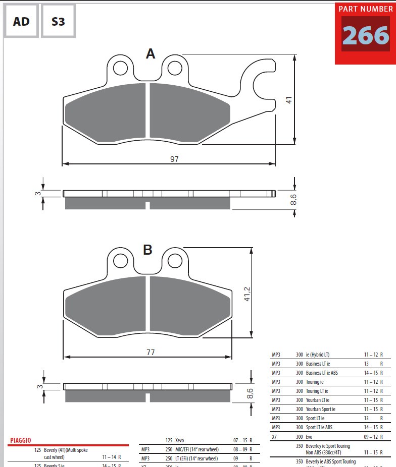 • The S3 sintered compound is optimal for street bikes, dual sport, touring, cruisers. It's recommended on applications with rather larger engines or for people who ride harder than average and want the great stopping power of a sintered brake pad.