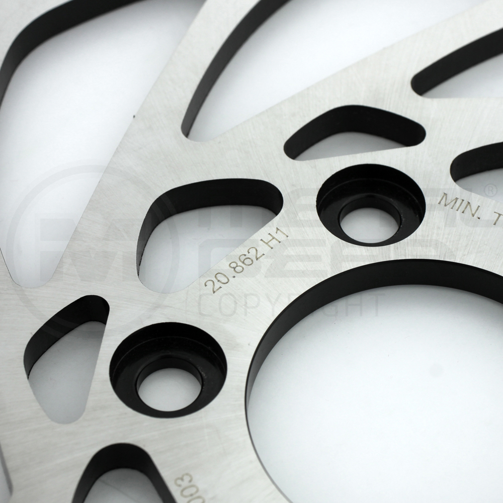 Crafted from premium AISI 410 Japanese stainless steel, these rotors deliver superior resistance to warping, corrosion, and wear, ensuring reliable stopping power in all riding conditions. Every rotor undergoes strict in-house quality control, so you can ride with confidence knowing your braking system meets the highest standards.