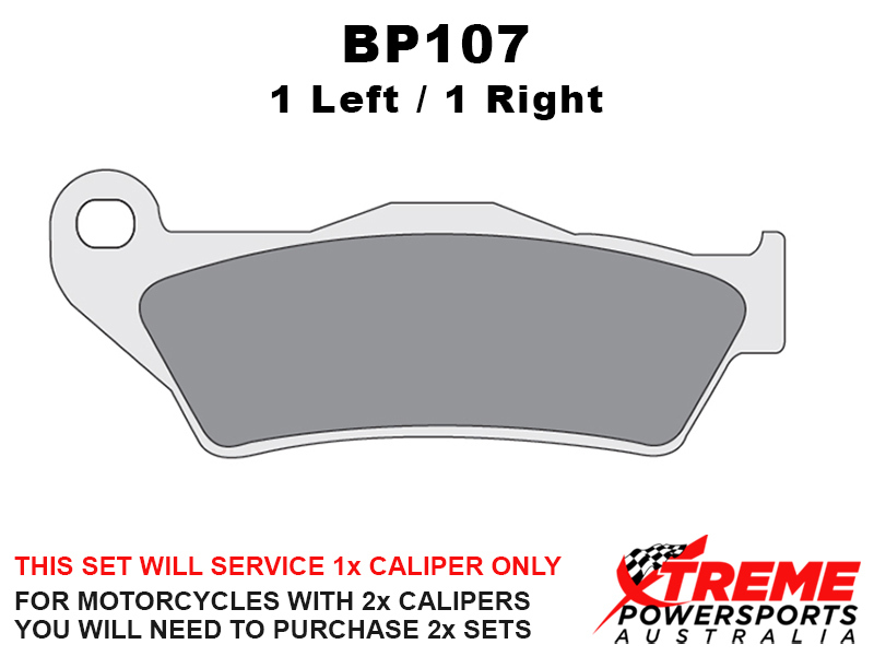 This set of brake pads will service 1x brake caliper only. For motorcycles with 2x brake calipers, you will need to purchase 2x brake pad sets.