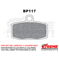 This set of brake pads will service 1x brake caliper only. For motorcycles with 2x brake calipers, you will need to purchase 2x brake pad sets.