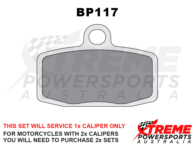 This set of brake pads will service 1x brake caliper only. For motorcycles with 2x brake calipers, you will need to purchase 2x brake pad sets.