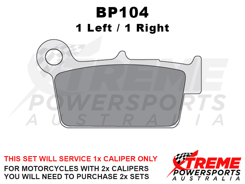 This set of brake pads will service 1x brake caliper only. For motorcycles with 2x brake calipers, you will need to purchase 2x brake pad sets.