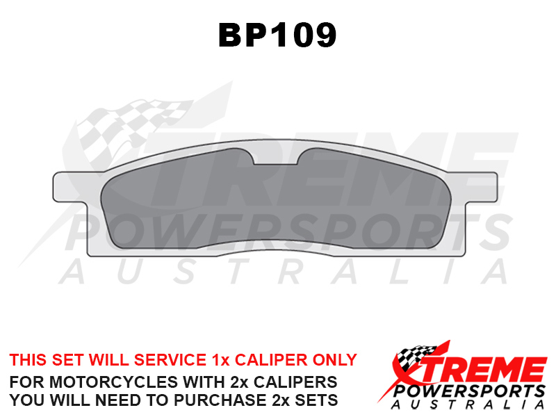 This set of brake pads will service 1x brake caliper only. For motorcycles with 2x brake calipers, you will need to purchase 2x brake pad sets.