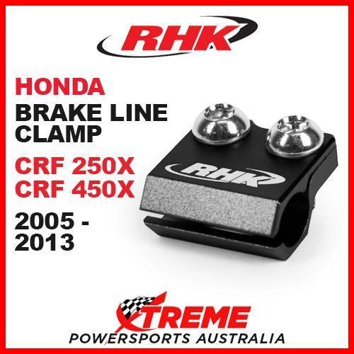 RHK MX BLACK BRAKE LINE CLAMP HONDA CRF250X CRF450X CRF 250X 450X 2005-2013 MOTO You are purchasing : RHK Brake line Clamp - Black (RHK-BLC01-K) Suits: HONDA CRF 250X Years 2005-2013 CRF 450X Years 2005-2013 Specifications: RHK billet brake line clamps are lighter and more durable than OEM clamps. Made from 6061 billet alloy. Fits original OEM fork guards. Available in five colours to suit application.