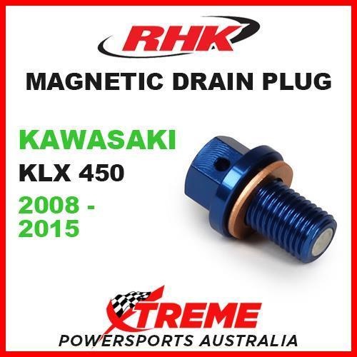 RHK MX MAGNETIC SUMP DRAIN PLUG BLUE KAWASAKI KLX 450 KLX450 KLX450R 2008-2015 You are purchasing: RHK Magnetic Sump / Drain Plug - Blue (RHK-MDP03-B) Suits: KAWASAKI KLX 450 Years 2008-2015 Specifications: Powerful magnet installed in drain plug to catch and hold metal particles includes copper ring for perfect sealing. CNC machined from 6061-T6 aluminium.