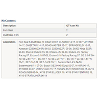 • Kit contains 2x Fork Seals and 2x Dust Seals.
