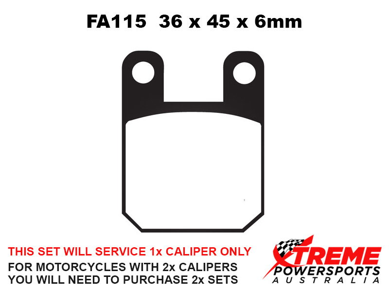 This set of brake pads will service 1x brake caliper only. For motorcycles with 2x brake calipers, you will need to purchase 2x brake pad sets.