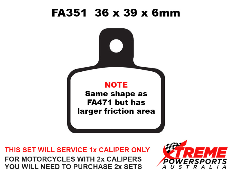 This set of brake pads will service 1x brake caliper only. For motorcycles with 2x brake calipers, you will need to purchase 2x brake pad sets.