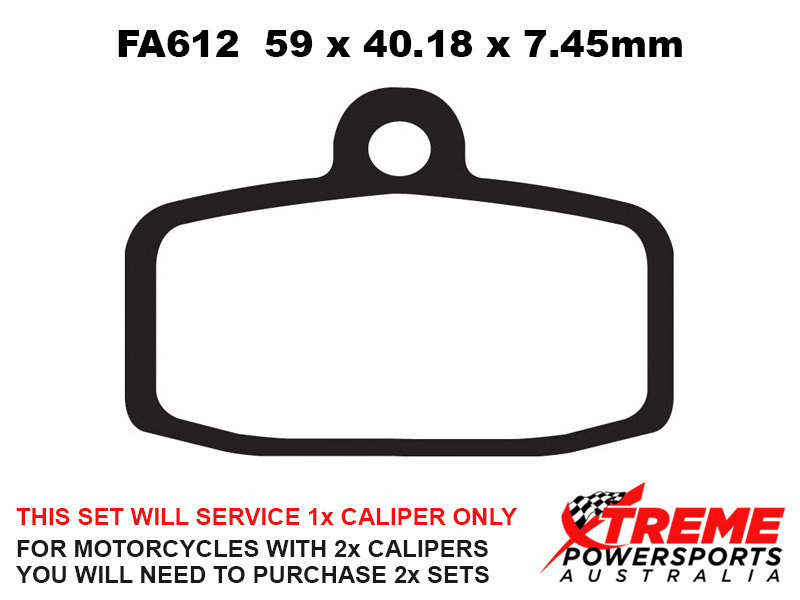This set of brake pads will service 1x brake caliper only. For motorcycles with 2x brake calipers, you will need to purchase 2x brake pad sets.