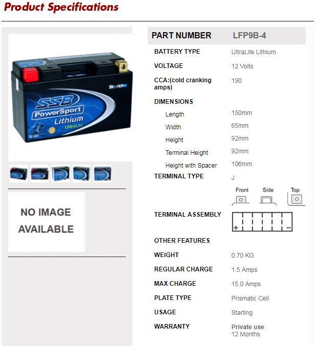 SSB Powersport V-Spec Battery (LFP9B-4)